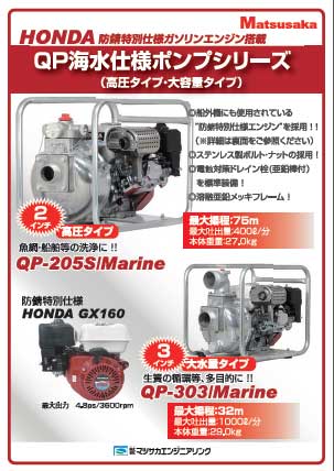QP 本田防錆仕様エンジン搭載 海水仕様QPポンプ