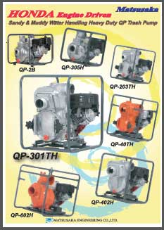 - QP Powerful Trash Pumps handle large amounts of water contained sands & debris !